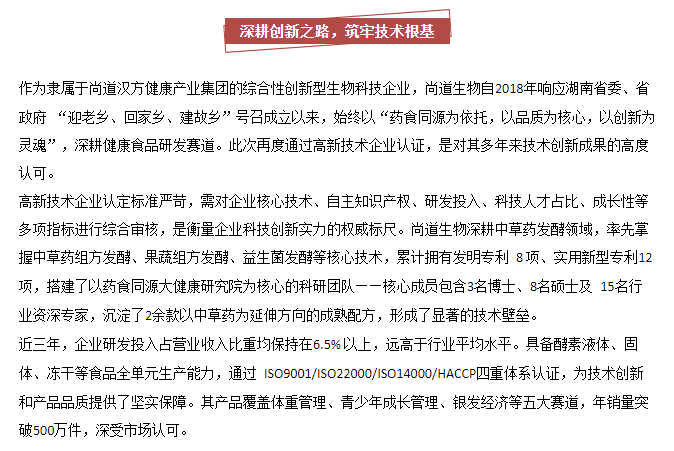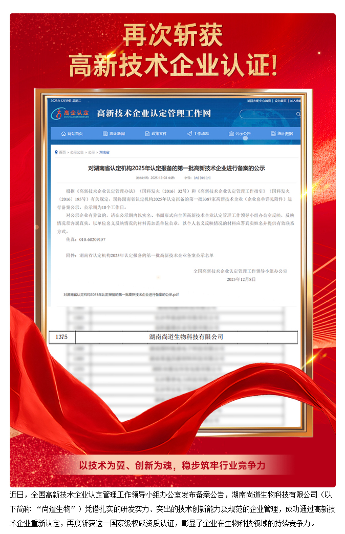 喜讯再传!湖南尚道生物科技有限公司再度斩获高新技术企业认证